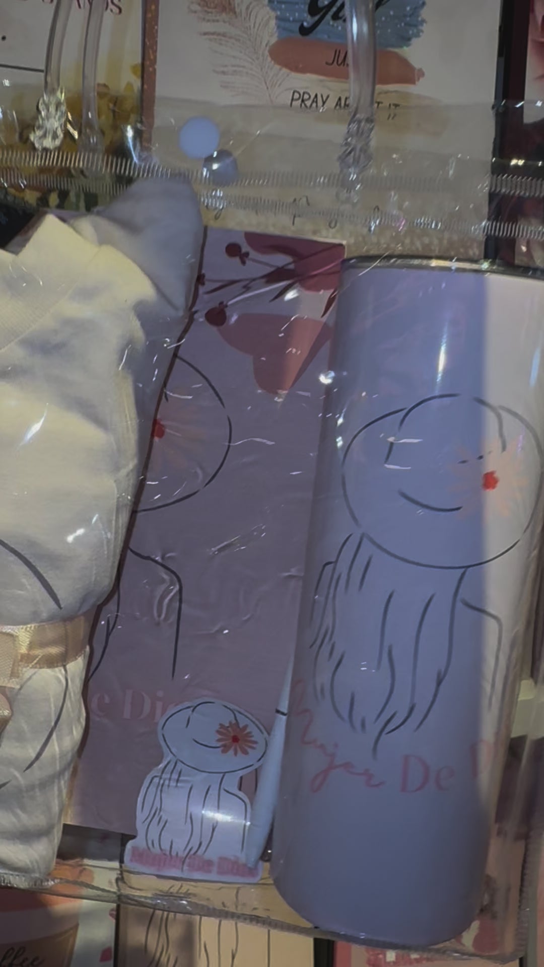 This gift set is truly gorgeous and comes in a handy clear bag. It features a pen, lined journal, matching tumbler, sticker, and tshirt, all designed with my original artwork. Perfect for any Christian occasion!